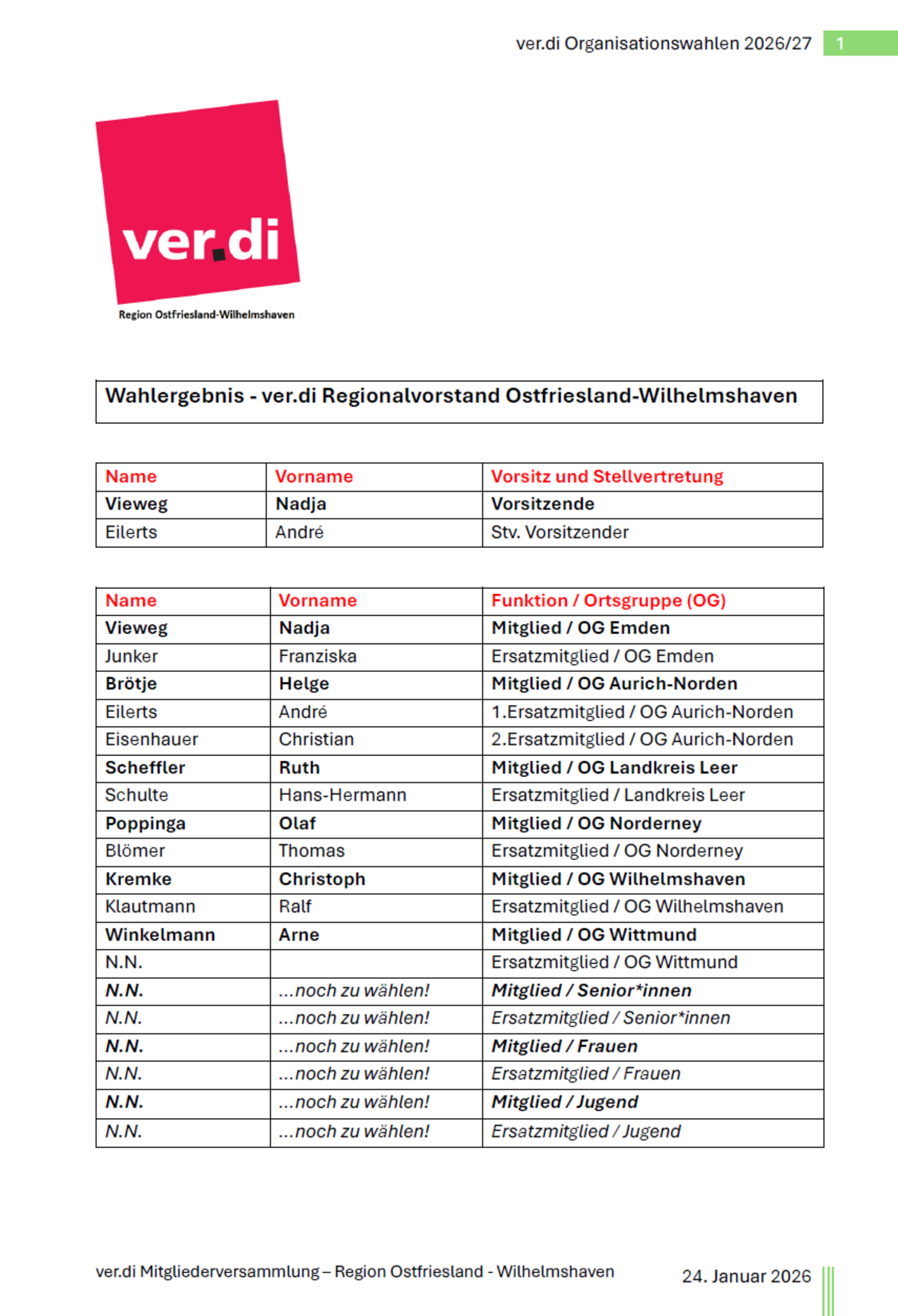 Wahlergebnis Orts- und Regionalgruppe 24.01.2026