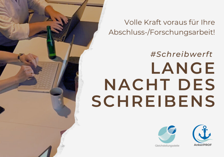 Das Projekt AnkerPROF und die Gleichstellungsstelle laden gemeinsam am 16. Juni 2025 von 17:00 bis 22:00 Uhr herzlich zur „Langen Nacht des Schreibens“ in unsere Schreibwerft im David-Fabricius-Haus (Paapsand 25) ein.