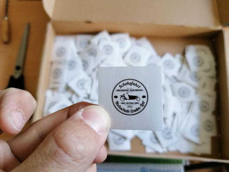 Da die Waren trotz abgesagter Fahrt in Amsterdam auf ihre Abnehmer warten, hat das Organisationsteam einen alternativen Plan erdacht. Einige der beteiligten Emder Firmen können diese trotzdem in Empfang nehmen. Für sie wird die Schokolade auf dem Postweg an die Hochschule geschickt und von dort mit Lastenrädern von den Organisatoren Kyra Buschak und Michael Becker zu Fahrrad Oltmanns, agilio, Pizza Pan, der AG Ems und dem Multi Markt im Dollart Center ausgeliefert.