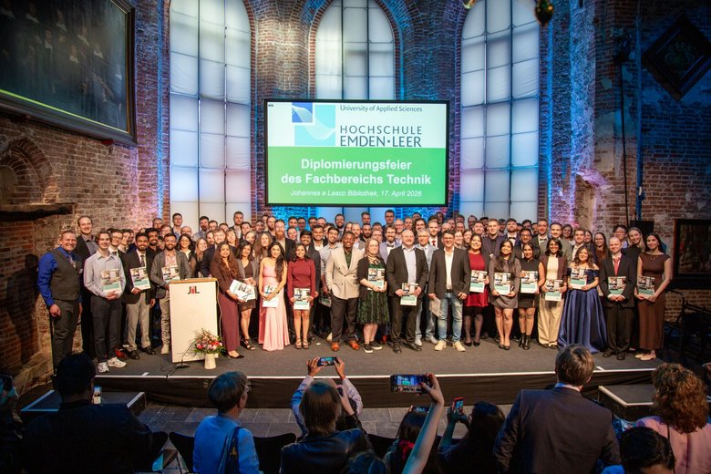 Der Fachbereich Technik der Hochschule Emden/Leer hat am vergangenen Freitag (17.04.) die 160 Bachelor- und Master-Abschlüsse des letzten Halbjahres in der vollen Johannes a Lasco Bibliothek und damit die Vielfalt der Abschlüsse und Perspektiven gefeiert. 96 der Absolventen und Absolventinnen hatten mit ihren Angehörigen, Hochschulmitgliedern und Ehrengästen allen Grund stolz zu sein.